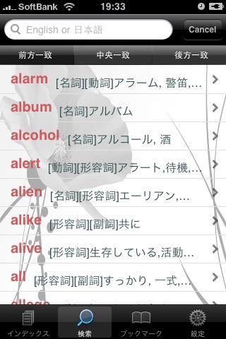 お気に入った単語を登録できるブックマークがしっかりと備わっています、