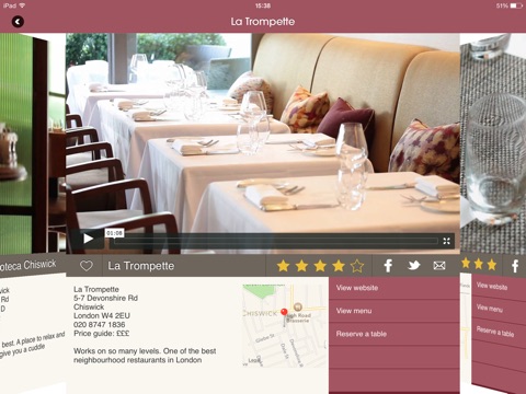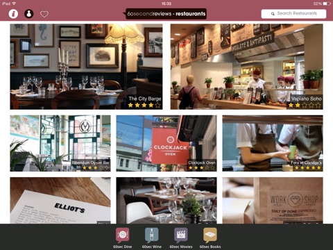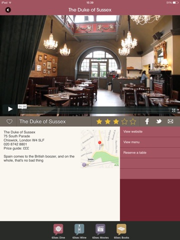 Scroll through our cover flow of reviews, updated throughout the month, and brought to you with insight, wit and style. As well as the new reviews, you can browse through hundreds of reviews in our ever-expanding archive, save your favourites, and then click to see menus or book a table. And with each review lasting only a minute, there’ll always be time to watch another. Optimised for the retina display, 60secondreviews are vivid, indispensable, and maybe just a little bit moreish.