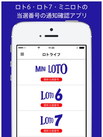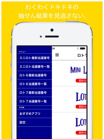 ロト6・ロト7・ミニロトの当選番号を抽せん日に速報通知するアプリです。