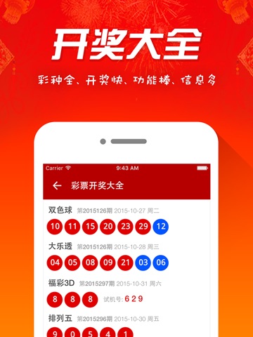 我们立志坚持为彩民朋友做好彩民工具、彩友社交和社区服务,适配iphone和ipad等IOS版本,争取比淘宝彩票更庞大、比网易彩票更好看、比360彩票开奖更及时,比彩票500万更专业,比全民彩票更狂烈,比火星双色球更专注!即将推出双色球开奖直播、双色球走势图、双色球选号缩水过滤、双色球预测、双色球资讯、选号技巧等等彩民工具!本应用暂未提供中国足球超级联赛等竞彩开奖结果。