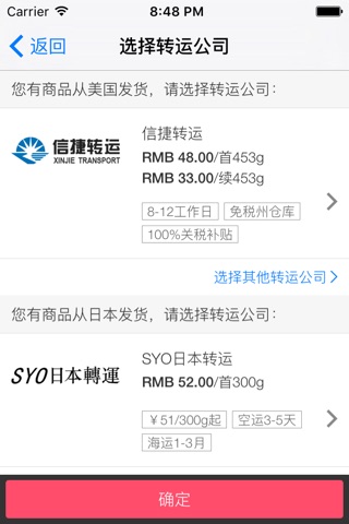 · 将到达转运仓库的商品提交转运,支付国际运费