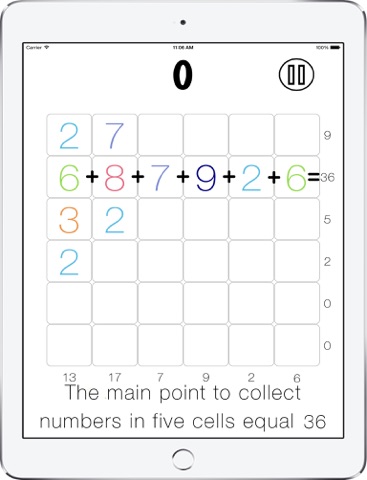 - When the sum of digits in any column or row equals to 36, this column or line will disappear and 36 points will be taken on your account