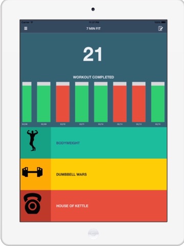 * Keep motivation high by maintaining green streak. Everyday workout is performed, you get a green bar and every day skipped is a red bar. Its time to go GREEN and GET FIT in 7 MINUTES.