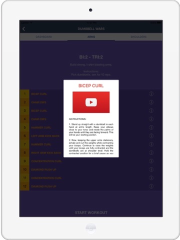 * Include 6 custom dumbbell based workouts created by professional trainers, based on 7 minute workout principle. Each workout targets a different muscle group. Helping you build muscle at your own pace.