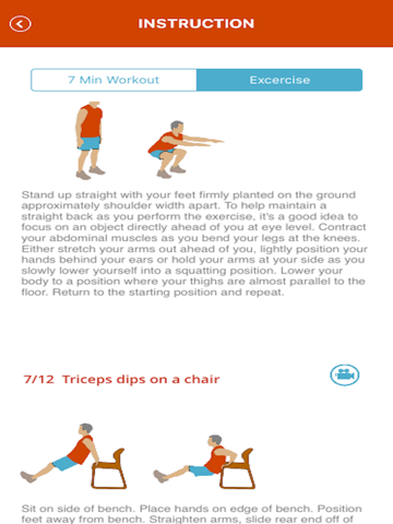The workout was developed by The Human Performance Institute and requires only resistance from body weight, so you don’t have to purchase any fancy exercise equipment or visit a gym to get in shape. The downside is that the 7-minute workout explanations from Institute and The Times only featured descriptions of the exercises paired with pictures or illustrations -something hard to base an exercise routine on if you’ve never actually done these workouts before. Twelve exercises make up the 7-Minute Workout, including jumping jacks, wall sits, push-ups, abdominal crunches, chair step-ups, squats, triceps dips on chair, planks, high knees running in place, lunges, push-up and rotations, and side planks. Part of what makes this workout so appealing is how many machines and exercise tools you don’t need. In fact, the entire workout consists of body weight exercises that only require a chair and a wall. It targets all areas of your body equally The purpose of the exercises should be to build strength in all major muscle groups, and to create a balance of strength throughout the body. You wont do five exercises targeting your lower body and just one targeting upper body. Instead, all body parts get the same amount of attention.It alternates between major muscle groups One of the reasons that HICT is such an intense and speedy fat-blaster is because many HICT workouts alternate moves between major muscle groups--from legs to arms to core, for instance, so youre not working legs for two or three moves in a row. This means that you don’t need to take long rest periods between moves, because while one muscle working, another is resting. Jumping from move to move to move with little to no rest in between guarantees that your heart rate stays elevated (and it helps you finish the circuit faster, because there’s no resting in between moves). And if you have one move that jacks up your heart rate (like jumping squats), you can lower your heart rate with the next move that’s less intense (like a stationary plank).