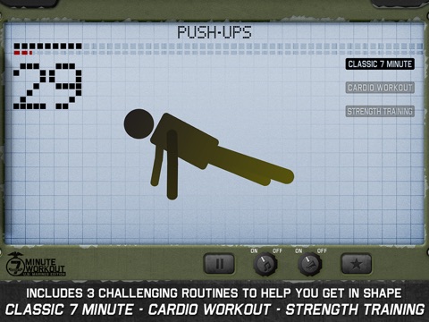 - 3 7-Minute Workouts to choose from: Classic 7 Minute, Cardio Workout and Strength Training