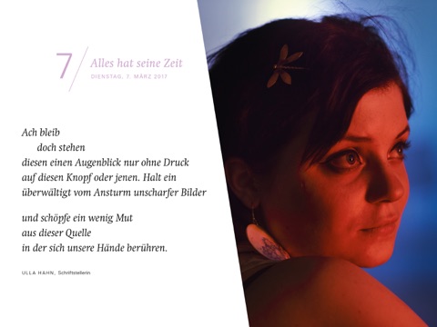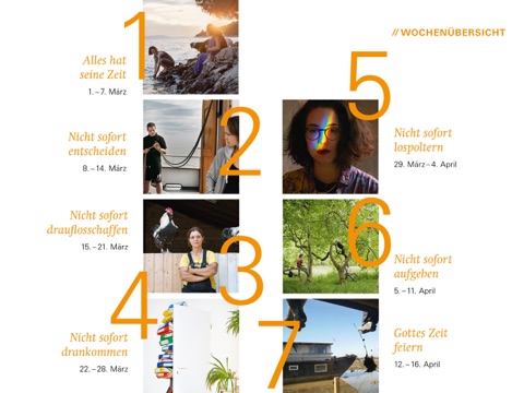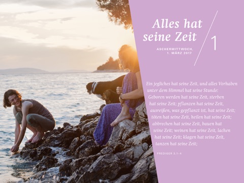 „7 Wochen Ohne“, das ist die Fastenaktion der evangelischen Kirche. Sie lädt jedes Jahr unter einem anderen Motto dazu ein, die Zeit zwischen Aschermittwoch und Ostern bewusst zu erleben und zu gestalten. Der Fastenkalender „7 Wochen Ohne“ bietet dazu Anregungen in sorgfältig ausgewählten Texten und Bildern. Sieben Wochen lang wird das Motto in unterschiedlichen Aspekten durchbuchstabiert. Dabei geht es nicht um Verzicht im wörtlichen Sinne, sondern um das Fasten im Kopf: sieben Wochen lang die Routine des Alltags unterbrechen und neue Perspektiven wagen! Millionen Menschen lassen sich jährlich darauf ein: für sich allein, in Familien oder als Fastengruppe in Gemeinden. Mit der „7 Wochen Ohne“-App können Sie Text und Bild des Fastenkalenders Tag für Tag sowie die wöchentlichen Fastenmails auf dem Tablet oder Smartphone (optimiert für Tablet) genießen.