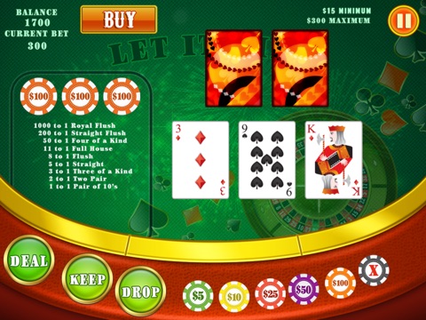 Play 5 card poker with 3 rounds of betting. Is your hand worth keeping or dropping? Place 3 bets and decide after community cards are turned over if your bet needs to be changed.