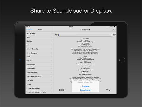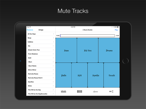 8 Tracks is a multi-track music App which allows you to purchase and download multitrack version of songs written by Jeff Williams for Rooster Teeth and RWBY. Hear the whole mix, or single parts, like vocals or drums. Its like being in the studio with the band! Then share with your friends via dropbox or soundcloud.