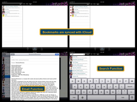 ☆ Ability to BOOKMARK selected musicals for easier reference