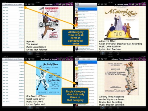 800 Musicals of All Times is an application containing detailed information of 800 great musicals in all times. The musicals are grouped according to the time of their first performance. It is probably the most complete and comprehensive musical encyclopedia available in the App Store.