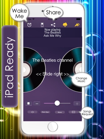Unlimited 70s 80s 90s music, songs, top hits from all genres, sleep timer, alarm clock to wake up with your favourite music, Facebook, Twitter & more!