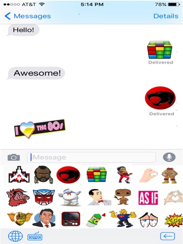 - Tons of 80s Emojis that work from your keyboard
