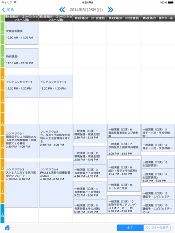 また、画面下部のボタンで表示切替すると、マイスケジュールに登録した講演を含むセッションのみに絞り込んで表示することができます。