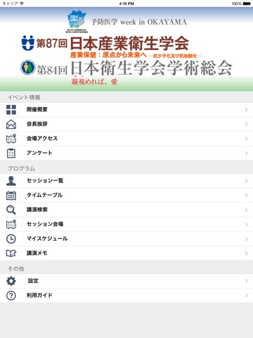 公益社団法人 日本産業衛生学会、日本衛生学会が運営する「第87回日本産業衛生学会/第84回日本衛生学会学術総会」の大会情報 の閲覧、聴講したいセッションや演題をスケジュール管理できるアプリです。
