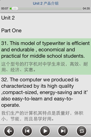 内容全面实用,播放模式方便灵活,支持后台播放,单句点读复读,顺序播放和单课循环播放。