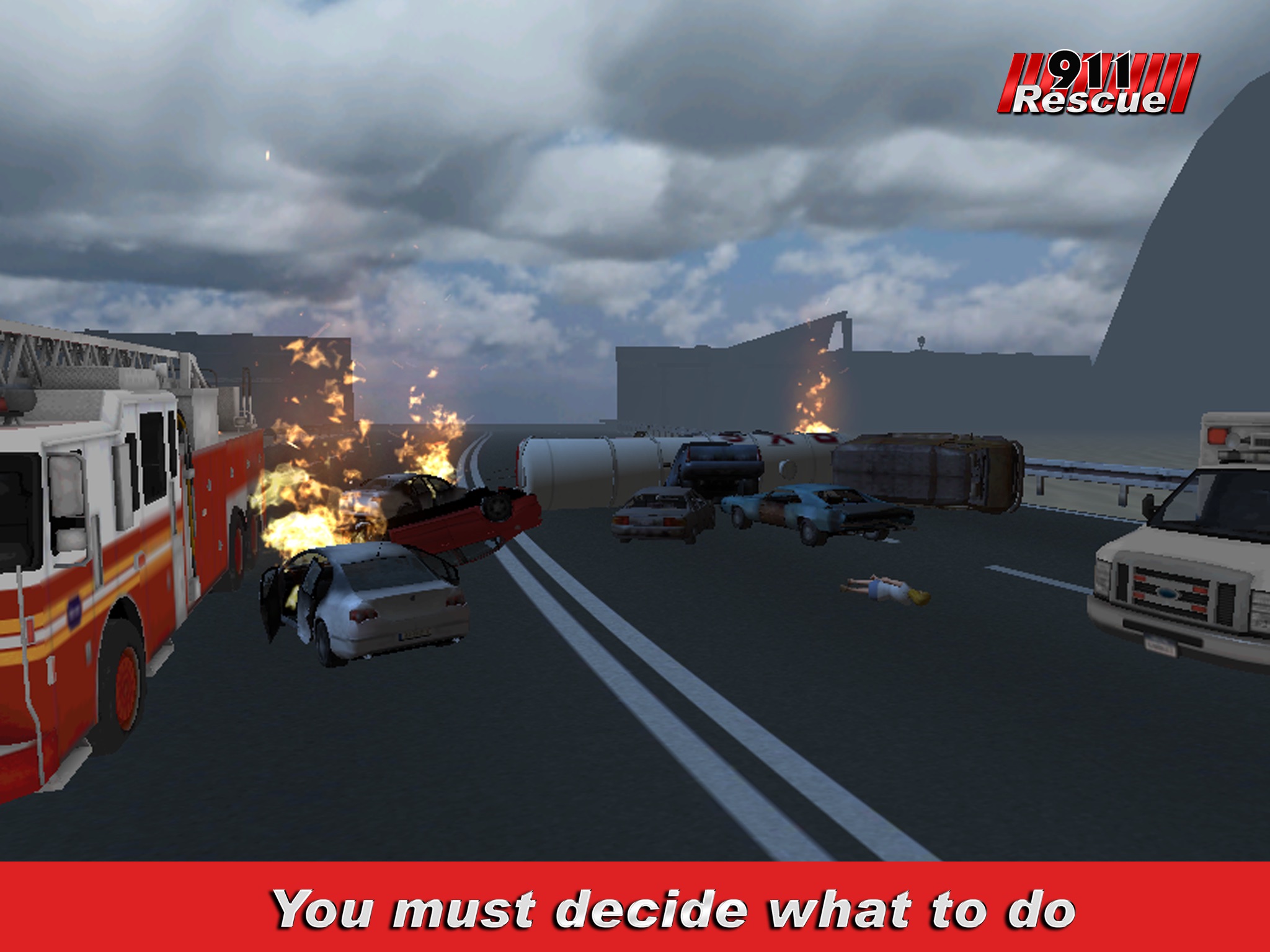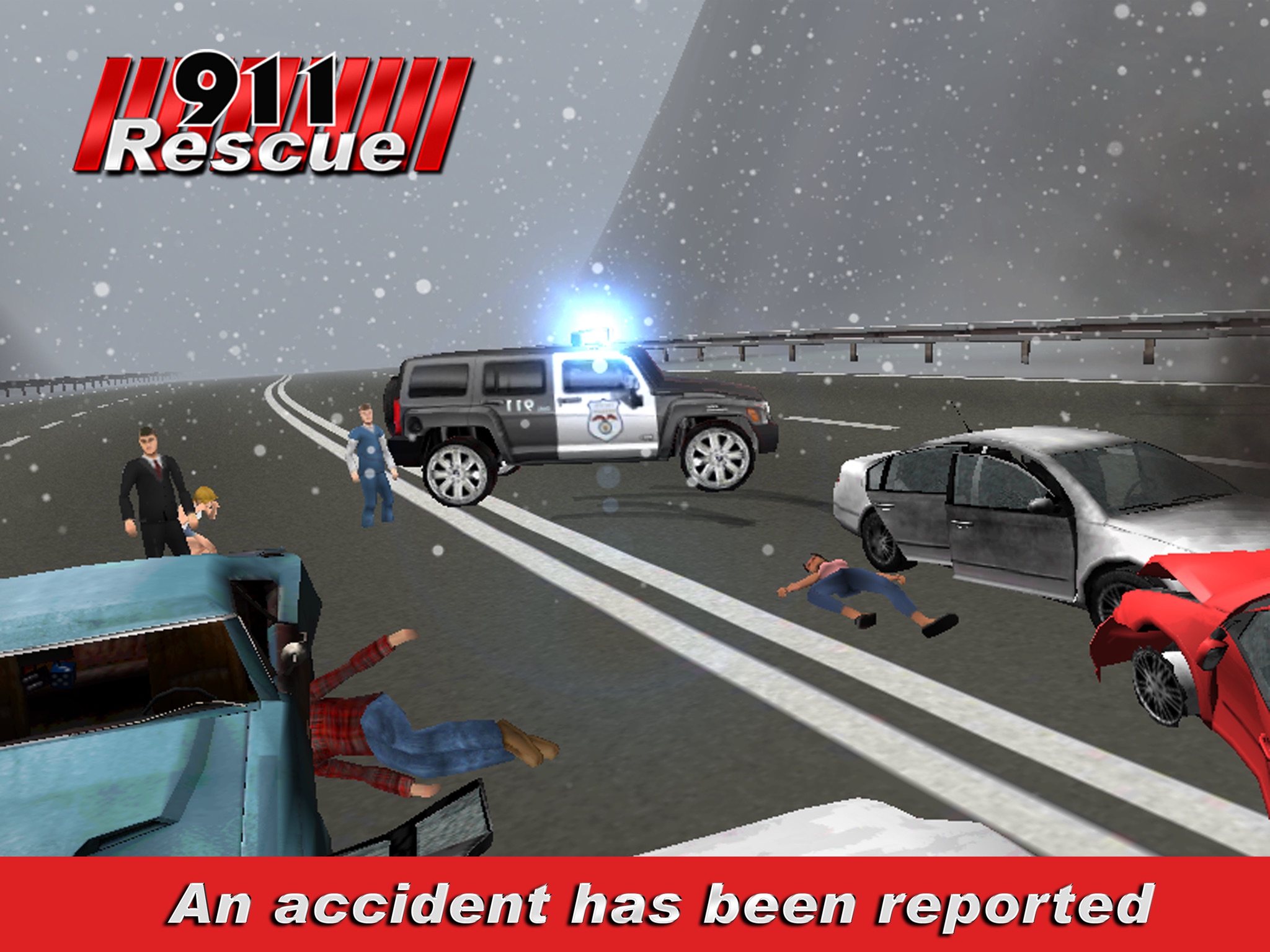 An accident has been reported on the highway and you must respond. Get in your police car and drive fast to the accident. Once there, you access the scene and decide what to do. Do you send the Ambulance? Maybe the Firetruck? Or maybe, you can handle this yourself. Choose correctly, and your will advance to the next level. Choose wrong and you will find yourself back behind a desk doing paperwork.