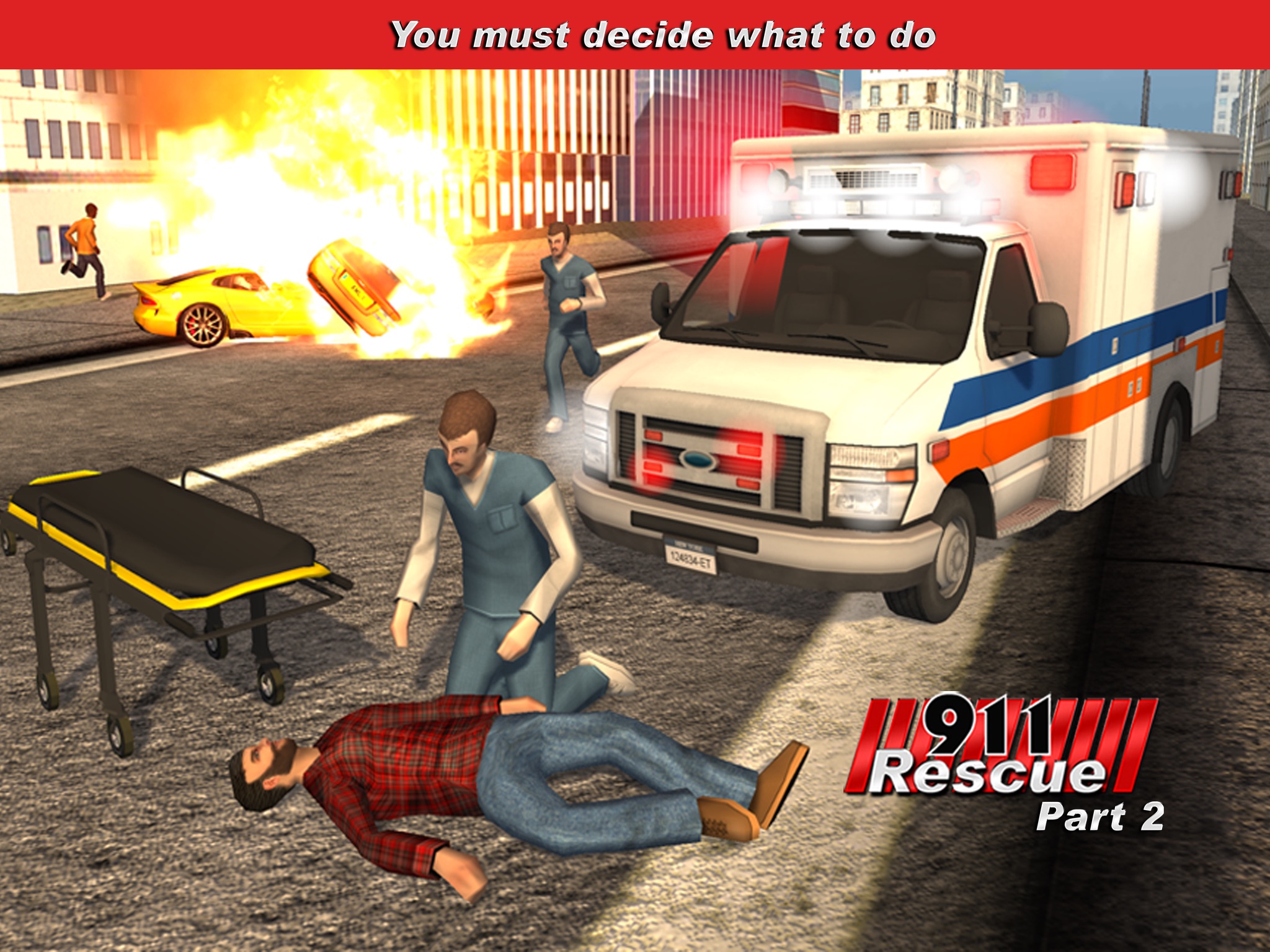 911 Rescue Simulator is back for Part 2! This time, your emergency scenarios are in the city, not the highway. Race to the scene in your police car to investigate the accident or crime scenario. Once there, you access the scene and decide what to do. Do you send the Ambulance? Maybe the Firetruck? Garbage Truck? Perhaps all you need to do in call the local Taxi service. When you choose correctly, you will advance to the next level. Choose wrong and you will find yourself back behind a desk doing paperwork. Think the same way a 911 first responder would think to solve the scenario.