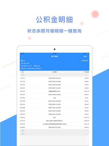1、公积金查询:对接公积金管理中心,查询余额、查询月缴、查询明细。