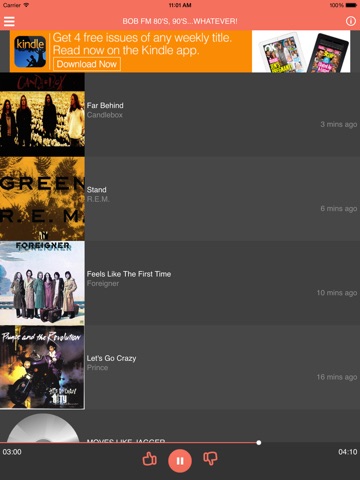 Think traditional radio has too much repetition and too many commercials? Yeah, youre gonna like BOB FM! A bunch of songs in a row from the 80s, 90s... whatever!