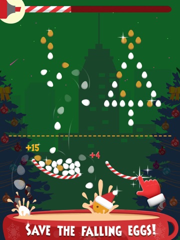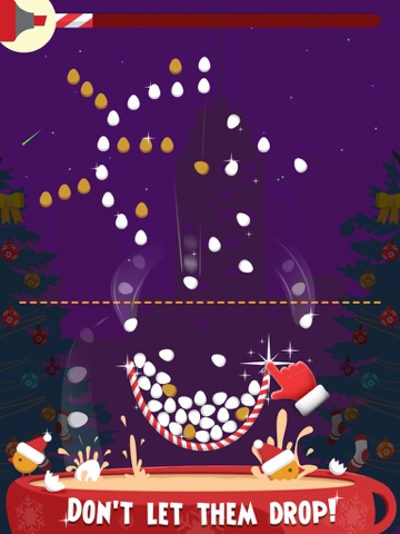 Draw a candy cane line to catch eggs. Your purpose is to catch as many eggs as you can, before they fall into the giant cup of eggnog! Bonus tip: colorful eggs are worth more points!