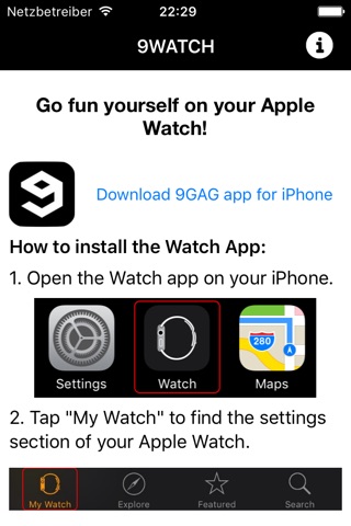 - iPhone App only contains instructions and a link to the official 9GAG App