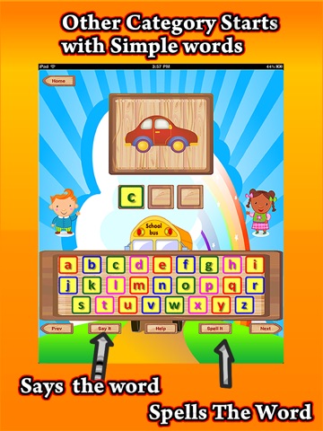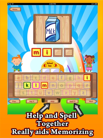 Spell-It Tapping on the button will spell the word, kids listen to it and learn how to spell it. The best way to memorize the spelling is listening to it. Great feature, along with Help, see next.