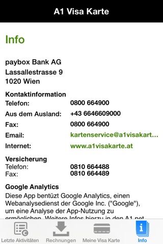 Mit der kostenlose A1 VISA Karten App behalten Sie den Überblick über Ihre Ausgaben und sehen auf einen Blick ihren aktuellen MOBILPOINTS-Stand. Über laufende Aktionen informiert ein Aktionsbutton. Viel Spaß mit Ihrer A1 VISA Karten App!