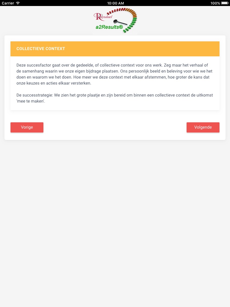 The Ruysdael Success factor scan app helps you explicate underlying personal perceptions and determines interventions that lead to acceleration towards successful results.