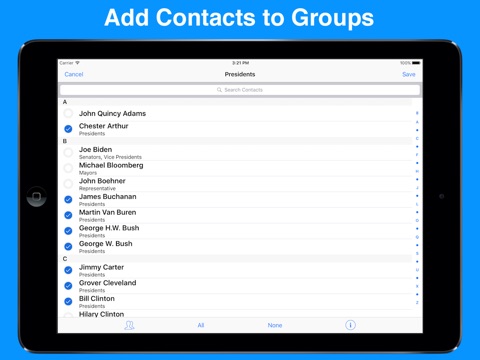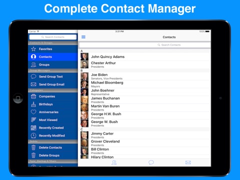 This has fast become my favorite app. I love the ability to send group text and emails, and personalize each one. If Apple is smart, it will emulate these features in its next iOS. I cant for the life of me imagine they will do as nice a job as A2Z. Thanks to the creators of this.