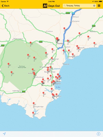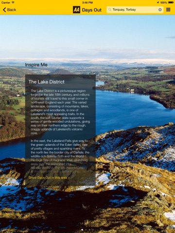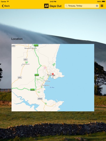 The AA Days Out Guide app includes the following main features: