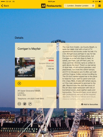 All listed restaurants have been researched by experts and awarded AA Rosettes by a professional AA inspector for the quality of their food. The restaurant’s entry can include a description, price information, telephone number, website addresses and more.