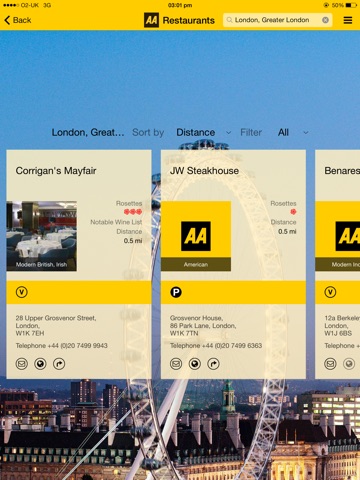 The AA Restaurant Guide includes the following main features: