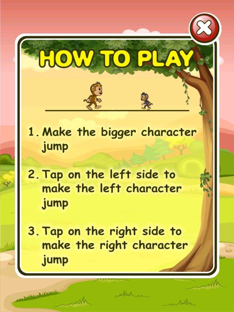Tap left to make the left monkey jump. Tap right to make the right monkey jump. Dont crash.