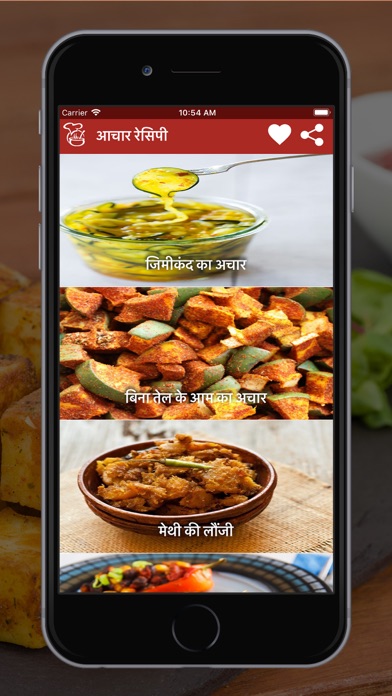 By using this Hindi app on pickle (achar) recipe, you can make delicious achar at home, This achar is better than one found in market which is full of oil and preservatives. No need to call your mother to learn making achar at home, now you can make your food tasty by adding many different pickles (achar) to your cuisine. Making achar is really rewarding experience.