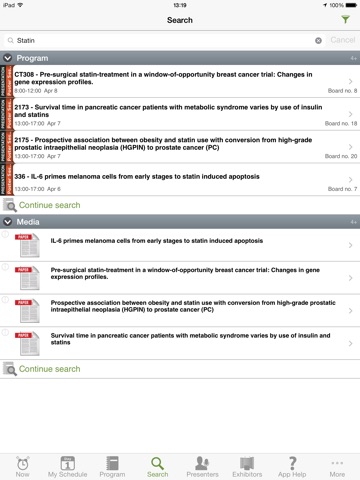 - Meeting Abstracts: The full text of more than 6,000 abstracts is stored natively, so you can access the Poster Session and Minisymposium presentations wherever you are. (Note: Late-Breaking Abstracts will be made available natively beginning April 4.)