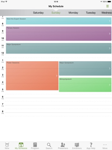 - Happening Now: Have a free moment? Get a quick list of the sessions that will be starting in the next 15 minutes.