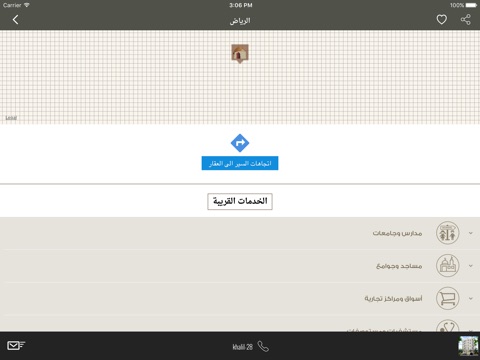 * إمكانية البحث عن العقارات عبر خدمة (البحث بالخرائط) وتعرف على الخدمات القريبة والمهمة كالمدارس والجامعات والمساجد والاسواق .. الخ