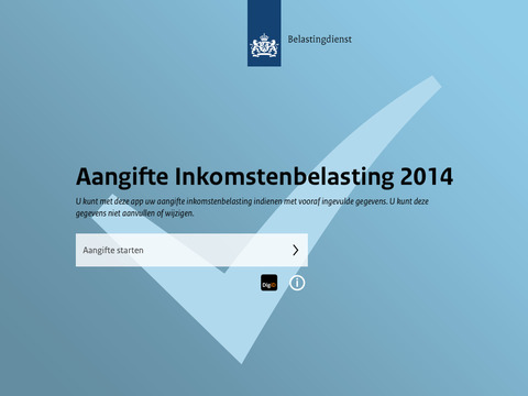 Doe met deze app gemakkelijk en snel uw aangifte inkomstenbelasting over 2014. Haal met DigiD uw gegevens op en controleer deze goed. Als alles klopt kunt u uw aangifte ondertekenen en verzenden. In de app kunt u geen gegevens wijzigen, waardoor niet iedereen hem kan gebruiken.