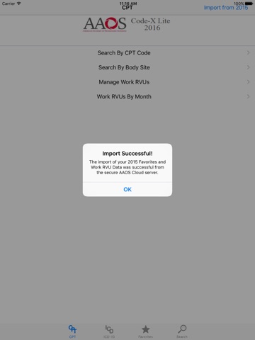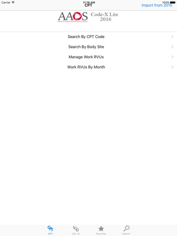 Published by the American Academy of Orthopaedic Surgeons®, X-Lite is Code Xs built-in companion for immediate, on the go coding. The robust application offers a full range of orthopaedic CPT codes, ICD-10 codes and RVUs. The application allows you to search by code and body site, e-mail patient information with the applicable code, manage Work RVUs organized by patients and surgeries, and view Work RVU totals by month. New for 2016 is the capability to do full text searches on CPT and ICD-10 codes making finding codes fast and easy. In addition, for X-Lite 2015 users, My Favorites and Work RVU data can be exported from the 2015 version and imported directly into this version providing continuity of user data from version to version.