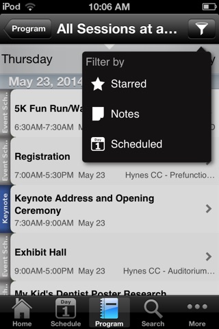 This customized conference app is your full featured guide to manage your AAPD 2014 conference attendance. App features include: • Native app: No wifi connection required to access the conference program, schedule or animated maps. • Home: Stay informed about hot issues, event program changes, your upcoming sessions and organizer messages. • Program: Browse the entire event program to build your personal schedule, bookmark sessions or speakers, or access session handouts as available. • Take notes and email them as part of your trip report for reference. • Exhibitors, Maps, related conference info and much more.