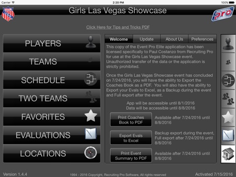 The Event Pro app provides college coaches and evaluators an electronic version of the coach’s packet, complete with searchable player, team and game layouts. The information is stored locally on an iOS device with the capability to update data when an internet connection is available. The Event Pro app provides coaches with the next generation of organizational tools to ensure the maximum efficiency of your time while attending this NCAA certified event.