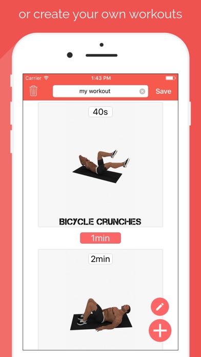 Create your own workouts with the custom workout maker.Chose the exercise, duration of it and the rest between and create a workout that truly fit you.