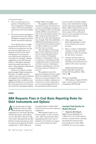 Subscribe today and learn why since 1971 the banking community has relied on ABA Trust Letter to deliver the most accurate, timely and thorough coverage of laws and regulations affecting: