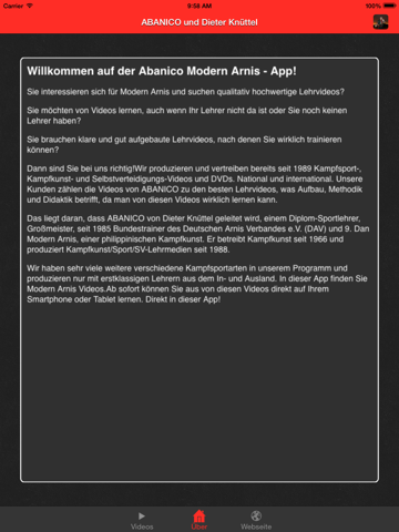 Wir haben sehr viele weitere verschiedene Kampfsportarten in unserem Programm und produzieren nur mit erstklassigen Lehrern aus dem In- und Ausland. In dieser App finden Sie Modern Arnis Videos.