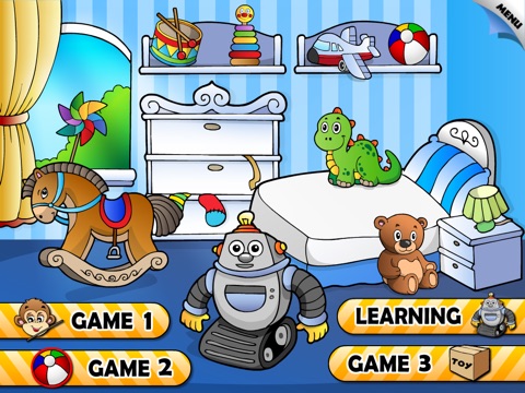 This game can be modified, so that the toy is to be identified only on the basis of its written name -- in the default mode, the name is pronounced aloud with the written name placed in the background to encourage association of the written form with the pronounced one, but also to enable the child to solve the problem without any knowledge of letters.