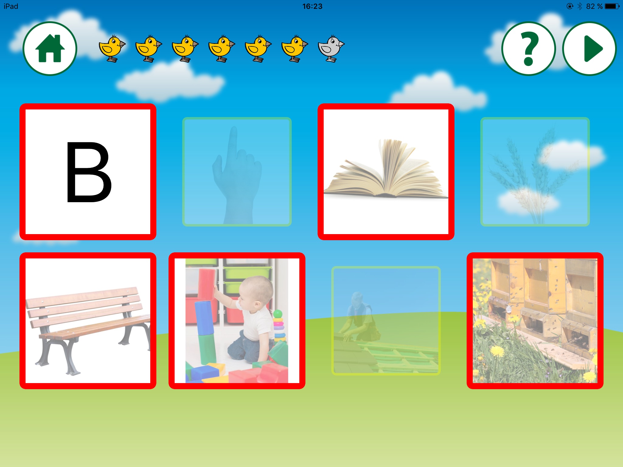 Erkennt das Kind das richtige Bild, so wird dieses rot eingerahmt.