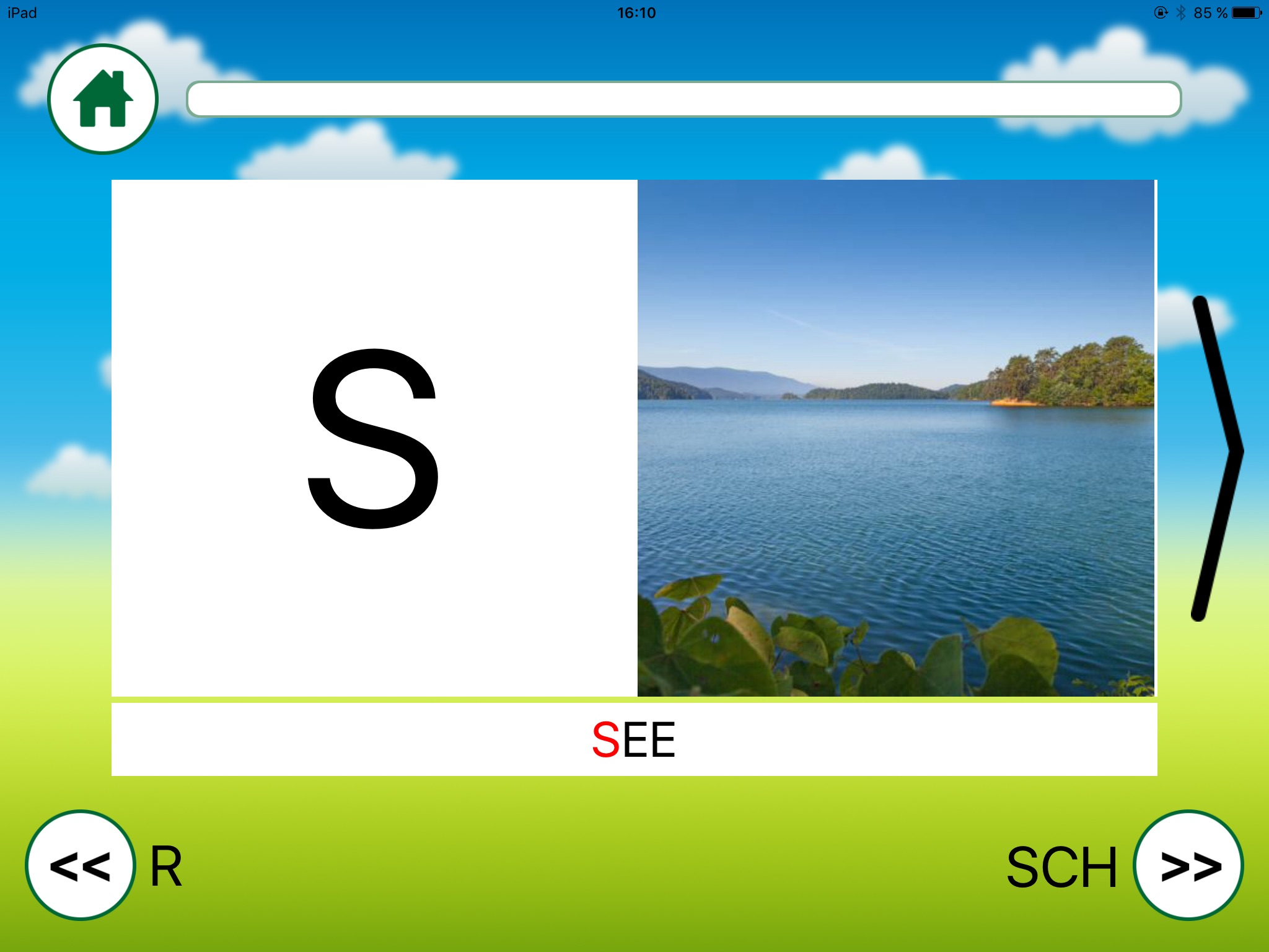 Durch verschiedene Karten werden die Kinder mit dem Aussehen und Klang der einzelnen Buchstaben bekanntgemacht. Die Vollversion beinhaltet 921 Bilder/Wörter. Im Elternbereich kann die Schwierigkeitsstufe für die Übungen ausgewählt werden (schwierige Wörter wie Astronaut, Automechaniker usw. sind besser für Fortgeschrittene geeignet.)