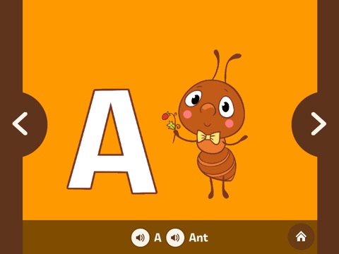A from Ant, B from Bear, C from cat... each letter comes with a funny illustration to associate and to learn how to pronounce. Move forward or go back as many times you want and discover all the animals hidden behind each letter. Is cool!