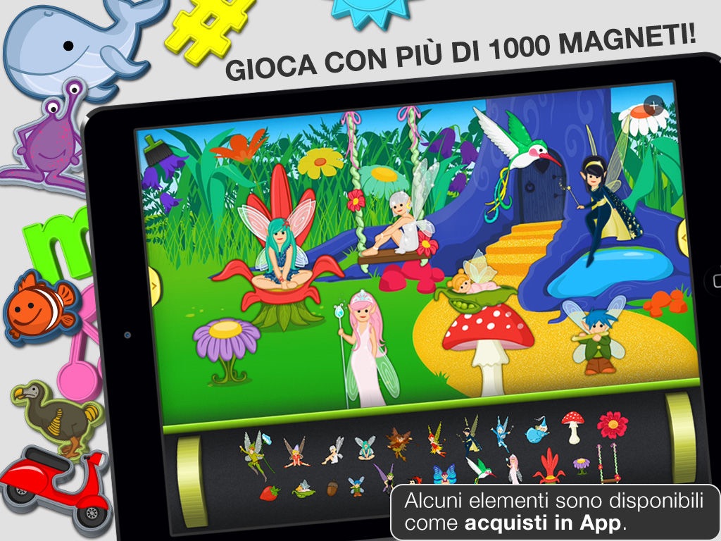 A simple and straightforward app, which stimulates creativity and imagination because it has no rules: your kids will freely create endless stories with the shapes of the classic set and with the themed magnets.